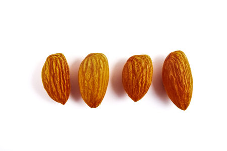 Almonds, isolated on a clean, smooth white background