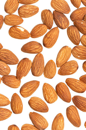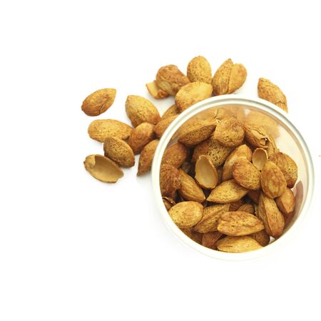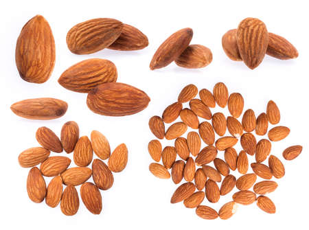 Almond seeds isolated on white background.