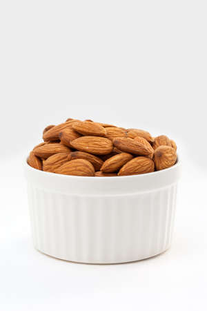Almond roasted in bowl on white background , Healthy food concept