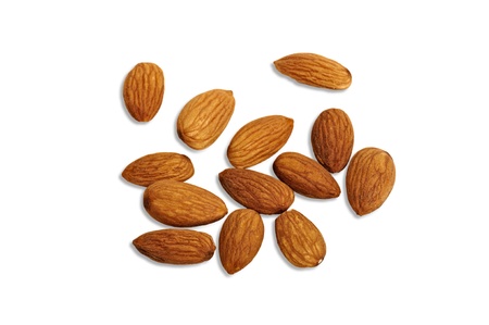 almonds on white background.