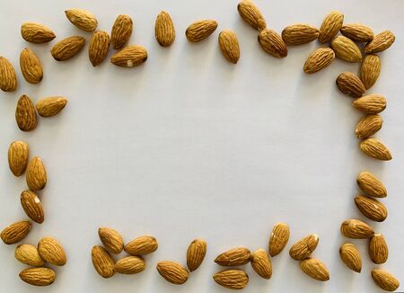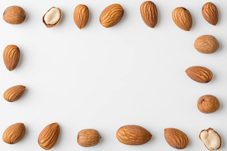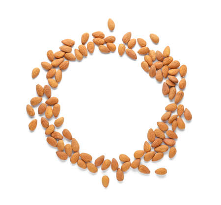 Almond frame on white background top view space for text