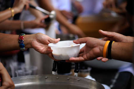 The Hope of the Poor by Donating Charity Food to the Immaculate : Participation in sharing food for the poor : The Concept of Love : The beggar is waiting for food from charity aid