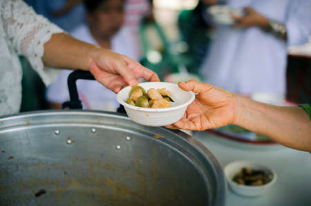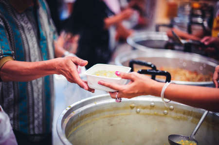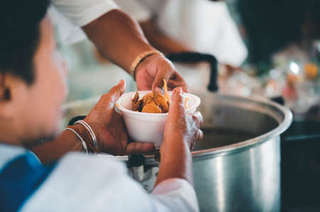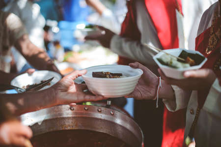 Concept of feeding and sharing : Providing free food for the poor hunger