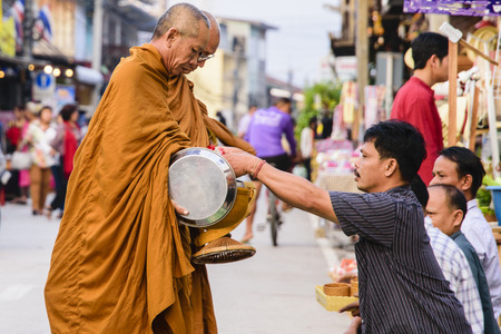 Satun, Thailand - December 30, 2014, at 07.30 AM: public offering food to monks. On the eve of the New Year to be reached. In Satun, Thailand will have merit by giving food to monks held annually.