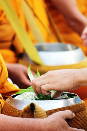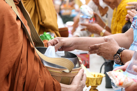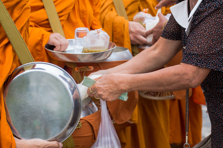The monks of the Buddhist Sangha(give alms to a Buddhist monk), which came out of the Buddhist offerings in the morning. In order to demonstrate faith faithfully perform the duties recently.