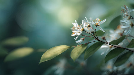 A close-up shot showcases delicate white flowers set against a dark green background. Close-up of delicate white flowers with a dark green background, highlighting the natural beauty of the blossoms.