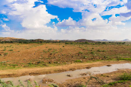 View of the indian rural landscape, Puttaparthi, Andhra Pradesh, India. Copy space for text
