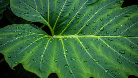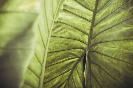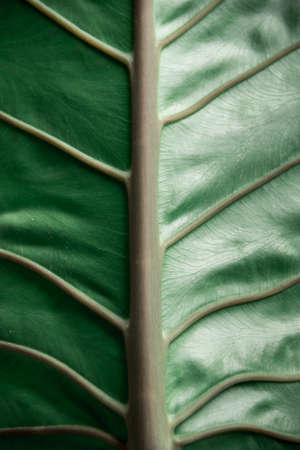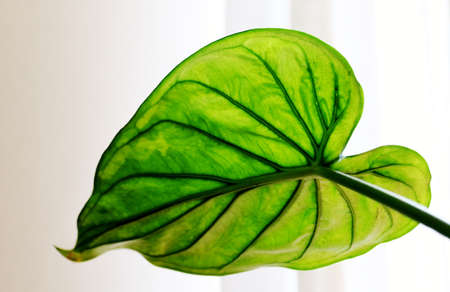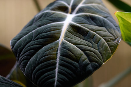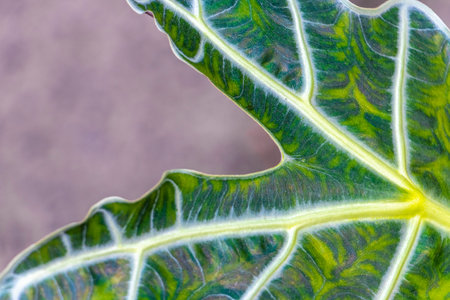 Bottom view of a alocasia amazonica leaf with a distinct pattern of veins