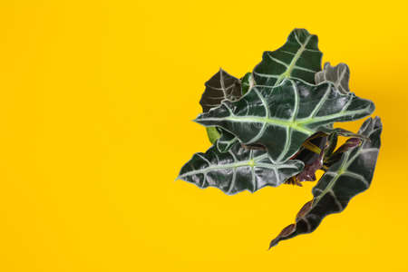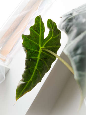 isolated elephants ear houseplant, Alocasia plant leaf with white background