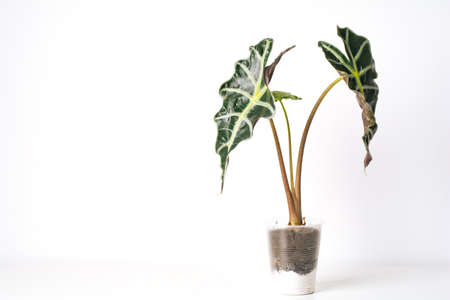 Alocasia Amazonica Sanderiana in pots with isolated white background