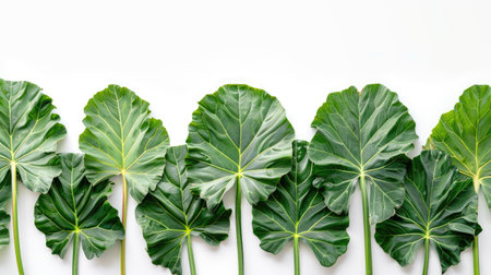 Green Leaves of Alocasia Plant Isolated on White Background with Clipping Path
