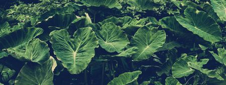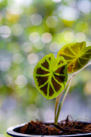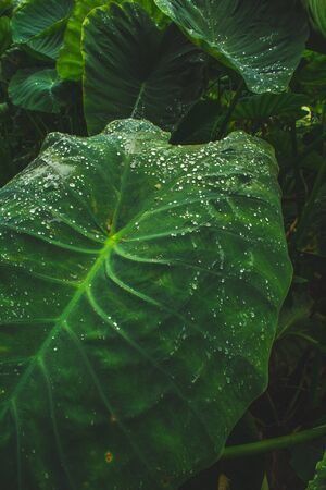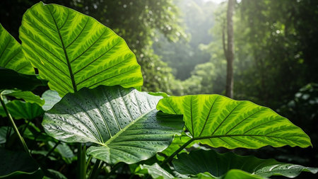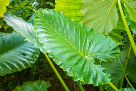Colocasia affinis foliage, tropical leaf in forest, Young seedlings are growing