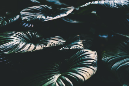 Large foliage of tropical leaf with dark green, jungle nature background.