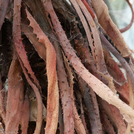 Detail texture and thorns at the edge of the Bromeliad leaves