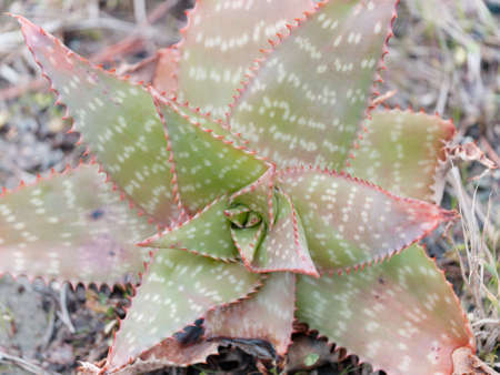 Aloe donnie in detail with red serrated leaves. Beautiful color of hybrid succulent plant