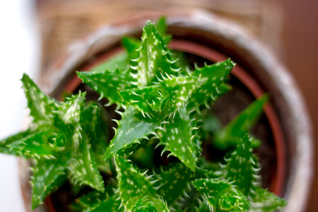 Aloe succulent plant close-up, freshness leaves with thorn of Tiger Tooth Aloe