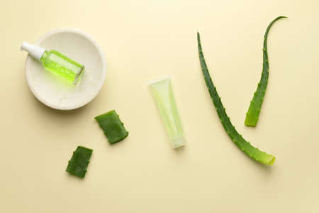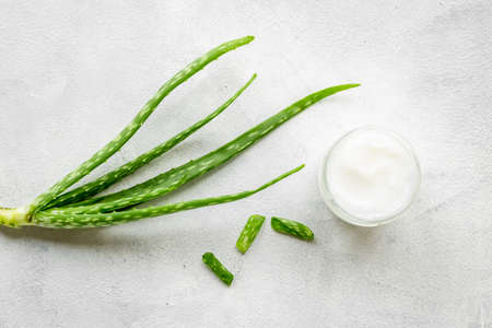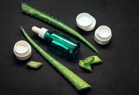Natural ingredient cosmetic concept. Face skin care organic serum and cream with aloe vera.