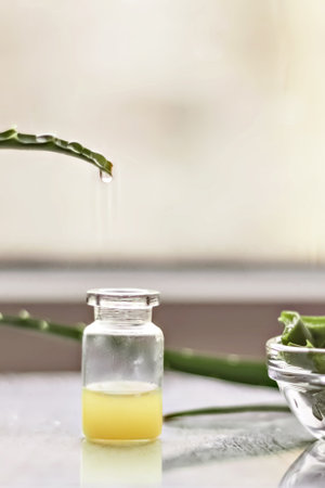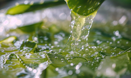 Close-up of aloe vera gel being extracted and blended with botanical oils and essences