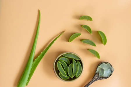 Aloe or Aloe vera fresh leaves and slices. Organic skin care
