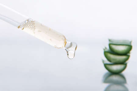 Dropper and cut aloe vera. Cosmetics from natural plants