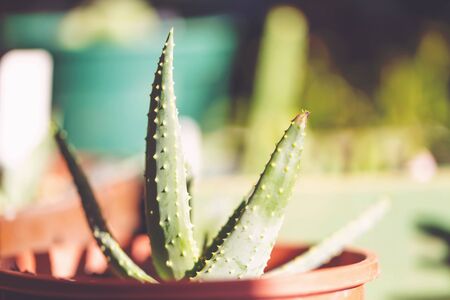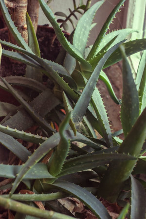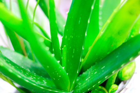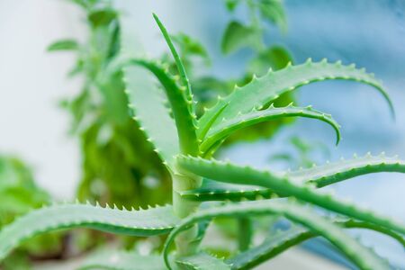 Aloe vera plant close-up, selective focus, natural background