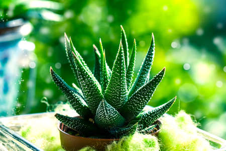 Haworthia in a pot, a pot with succulent plants haworthia on a table