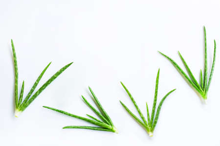 Aloe vera leaves on white. Copy space