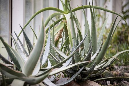 Close up portrait of big aloe plants in botanical garden