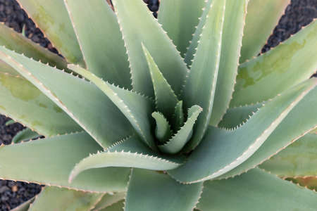 Aloe vera plant on the farm, close up view, Fuerteventura, Canary Islands, Spain