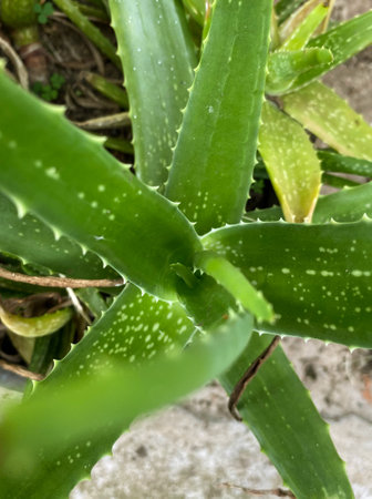 Leaves of medicinal green aloe vera plant