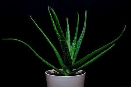 Aloe vera in pot, isolated on a dark black