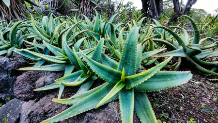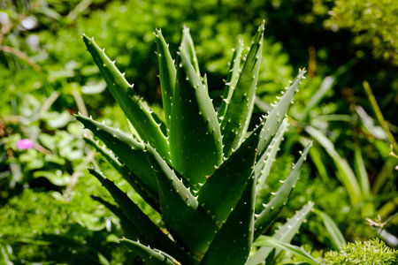 Detailed view of an aloe vera plant, highlighting its spiky leaves and rich green color.