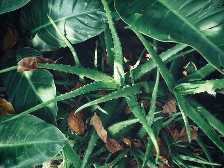Detail photograph of some aloe vera green plants