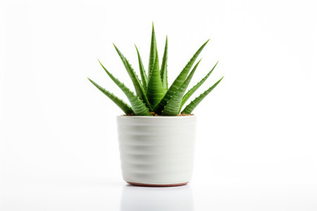 Isolated aloe vera in a white pot
