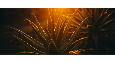Aloe vera plant at sunset with copy space for text.