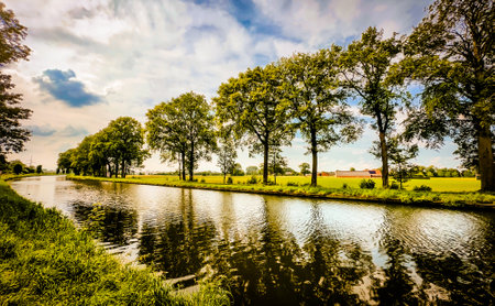 Symmetry view on flow line of menmade canal in Belgium.