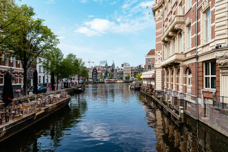 AMSTERDAM, NETHERLANDS - APRIL 14, 2019: Beautiful Houses on Amsterdam Canal, Netherlands.