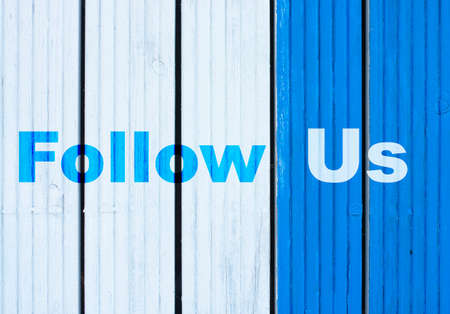 Follow, word in wooden alphabet letters isolated on bright yellow background with copy space