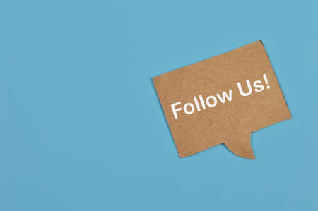 Top view of speech bubble note written with FOLLOW US!