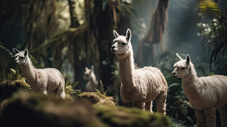 Illustration of llamas with their flocks in the forest, wildlife