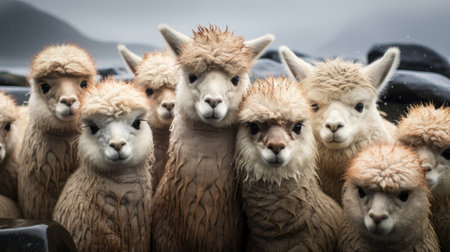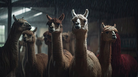 Group of Alpaca (Lama glama) in the rain