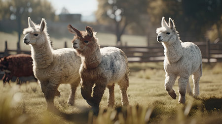 Alpaca animal herd landscape farm ranch photography AI Generated Image