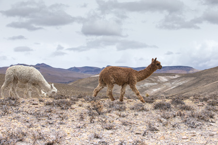 lamas in Andes,Mountains, Peru