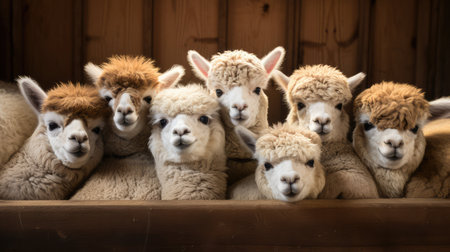 photograph isolated alpaca farm illustration group huddled, cozy wood, straw bedding photograph isolated alpaca farm