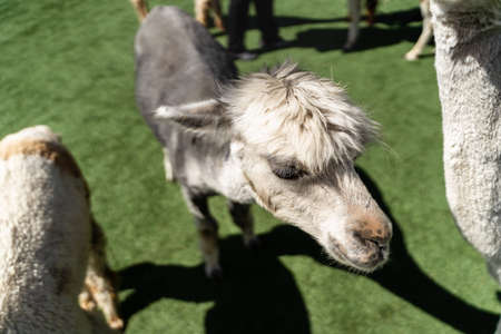 Beautiful alpaca (Vicugna pacos) living on farm, animal portrait