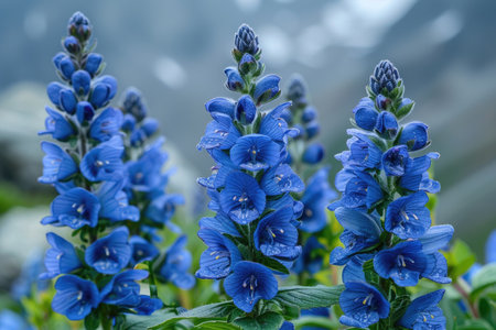 A rare alpine flower blooming on a rocky mountainside.