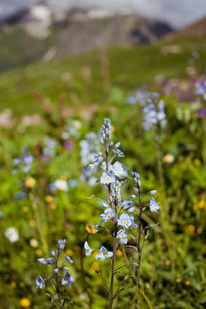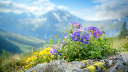 Mountain meadow with wildflowers and blue and yellow flowers