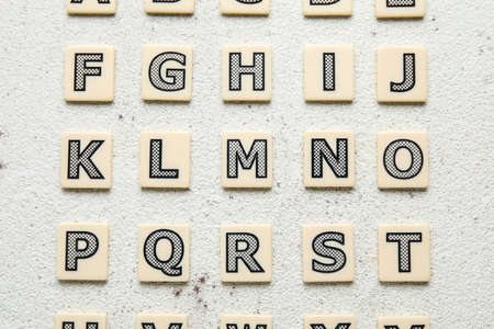 Large white letters of the Latin alphabet. English alphabet. The concept of literacy and education. Flatley of English letters. Learning to read and write.