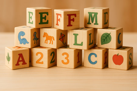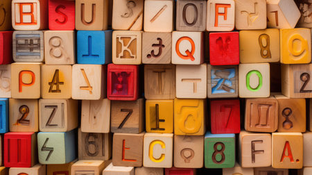 Softly Lit Stack of Wooden Alphabet Blocks with Various Shades