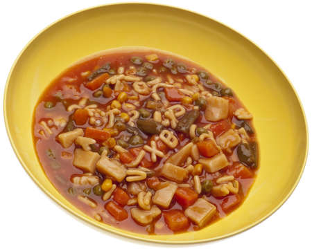 Vegetable Soup with a Variety of Vegetables and Alphabet Noodles.